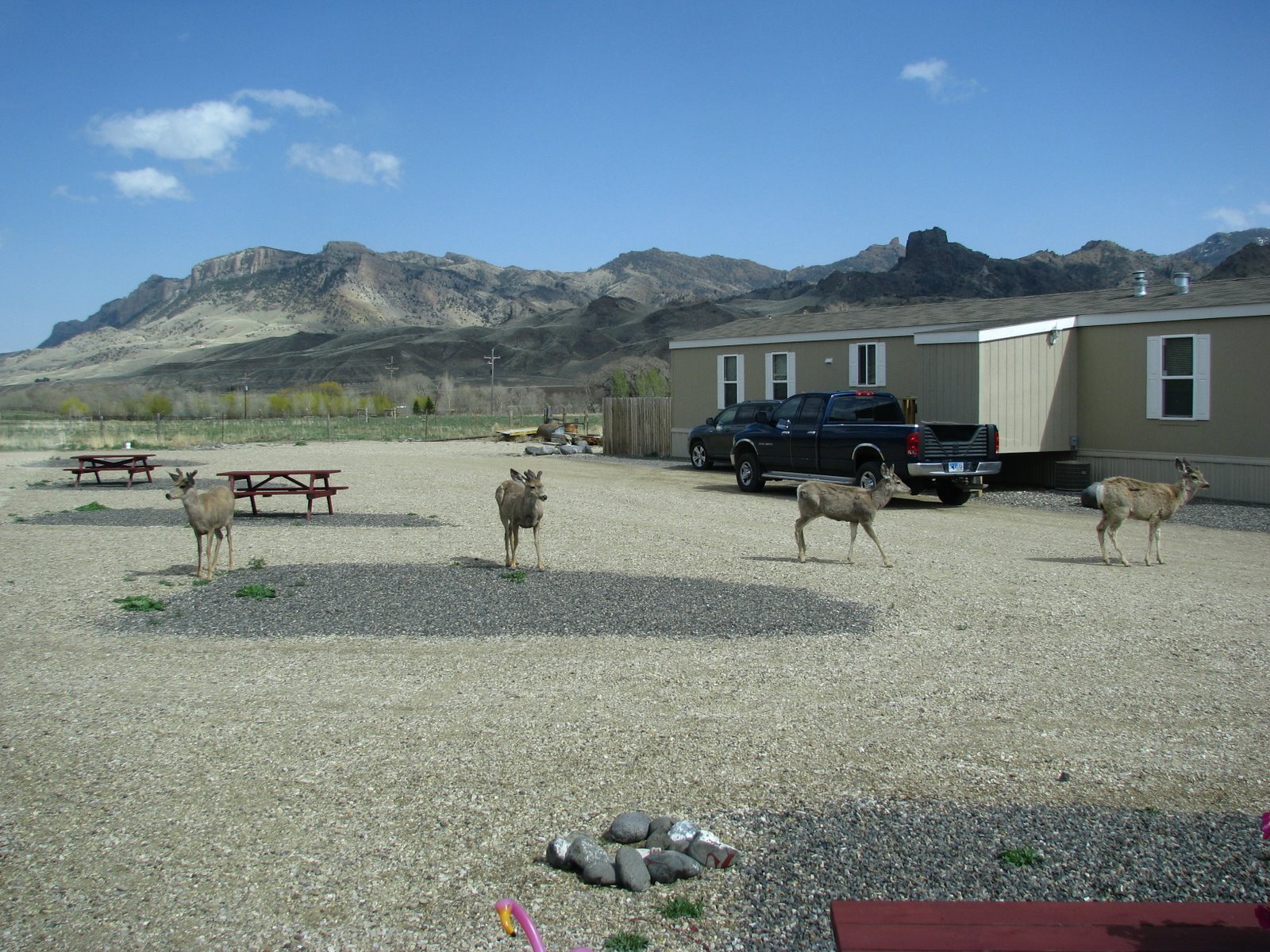 The deer population is huge! Driving back from Cody today I had to stop as a herd crossed the highway to join more that were in the field. There had to be at least 200, if not more, just grazing in the field next to the road. Pity the person who tries to have a garden.