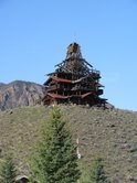On the way back to YVI, I stopped and took a picture of this really weird structure perched on top of a peak in Wapati. Seems a very ‘strange’ gentleman started building it, fell off the roof and died. It went to his heirs, they don’t want it, so now it just sits! I would just love to see the inside but understand it isn’t safe. And since there wasn’t too much traffic, I pulled the Jeep off the highway, climbed the guardrail and took the picture of the Shoshoni River as it gushes through the cliffs into the damn.