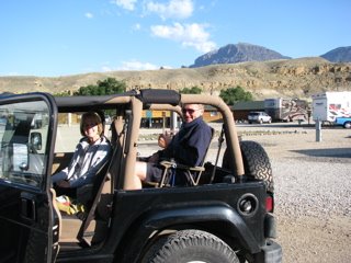 Since I had purposely left the back seat of my Jeep in MN to allow for packing lots of ‘stuff”, I jerry-rigged a metal lawn chair with bungie cords to where the regular Jeep seat would have been, Harv climbed in and away we went.