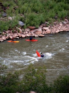 What a glorious place! Jim and Sue, the owners of the campground, let me take off and ‘play’ and explore whenever I want. Yesterday Sue invited me to go on her morning walk (think hike!) with her friends and all their dogs – 6 labs. Not only did we hike way back and up into the hills, I ended up with a pair of ‘dyed’ red rock socks. Now they sell T-shirts, etc. out here that have been colored with the red clay dirt for lots of money. I found you only need wear a new pair of white sock with your hiking boots and you got lovely pair you didn’t have to pay a penny for! And no, the color doesn’t wash out.