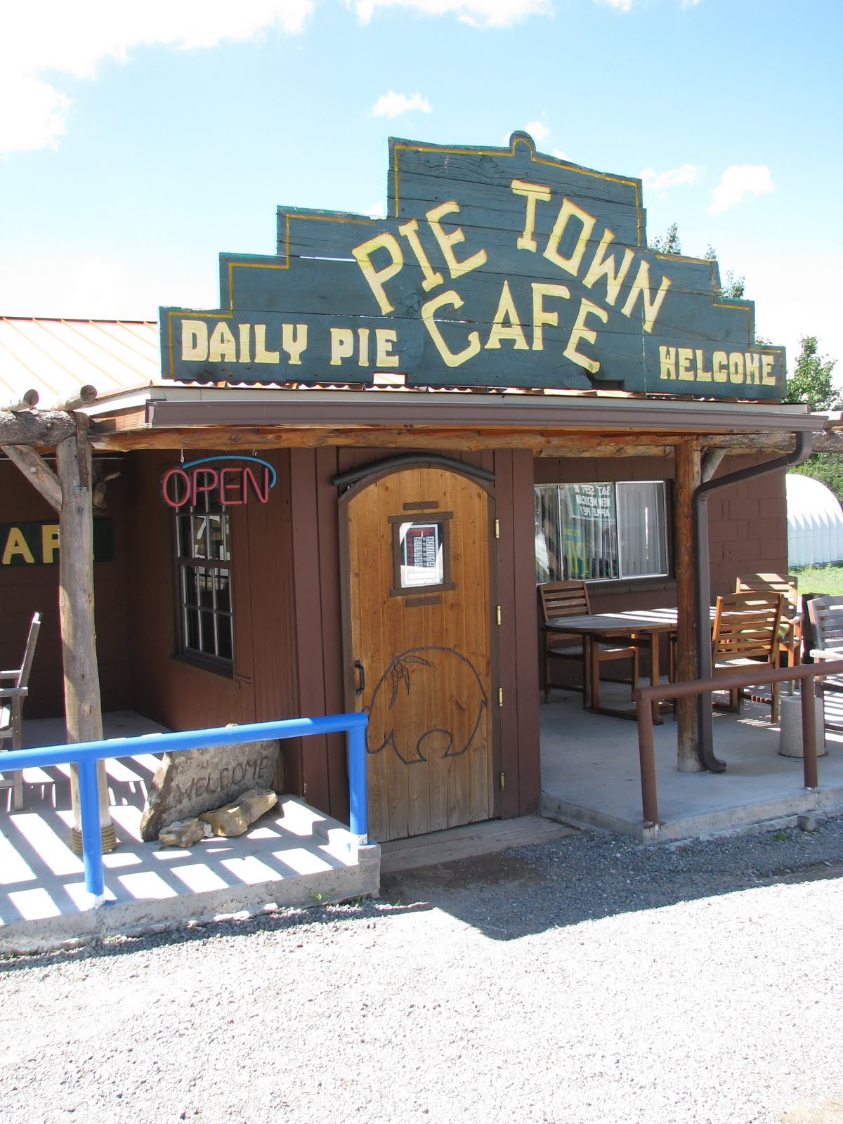 As it was getting to be quite a bit past the noon hour and my tummy was letting me know I had had a very small continental breakfast at the Days Inn a long time ago, I thought it was time to find a place to rest and dine. And all of a sudden I was climbing up…and up into the Sawtooth Mountain range and into Pie Town, NM. Now there is really…no, there is absolutely nothing in Pie Town, NM except the one place I found open and selling what else but….pies! Fresh backed and delicious pies of every kind and berry and fruit, all topped with ice cream, of course, if that was your pleasure. Oh, they did have a small sandwich menu to go with your slice of pie.