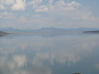 Looking out from the deli is another treat, this time for the eyes, for directly below is Mono Lake. Large, beautiful, and today hazy.