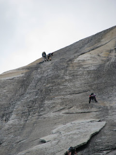 The scenery, the views, those silly rock climbers on sheer-faced granite rocks, the crystal clear lakes which reflect the surrounding mountain peaks and fluffy white clouds – it was a wonderful 3 1/2 hour drive – until the last 30 minutes.