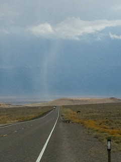 From desert to climbs up 11,000 foot peaks, to sagebrush to rain squalls, this drive was not only barren and beautiful but exhausting. The clouds actually came out of the sky and touched the road.