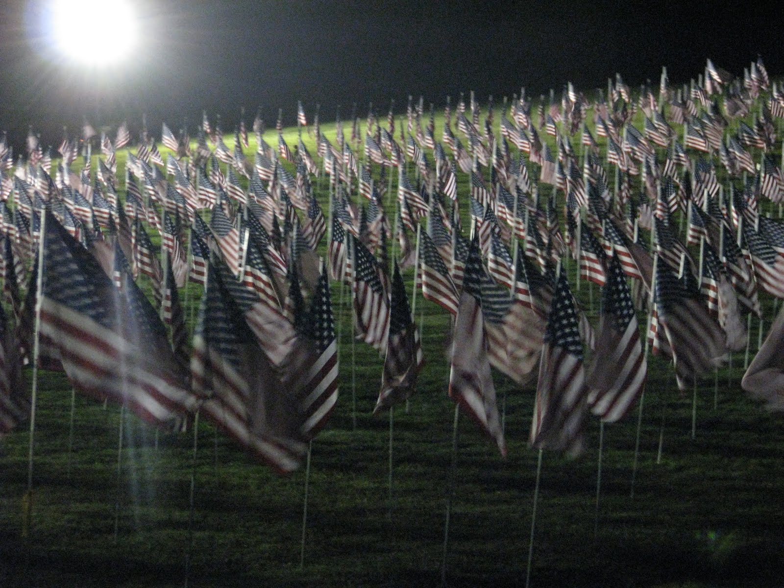 As we were driving out of the Park, we stopped on Art Hill to stand and be deeply moved by the 9/11 memorial that had been set up to honor to those that passed on that day 10 years ago. A local man devised a way to precisely set 3000 flags, one for each person lost that day, each flag containing the name and location where that person was lost. To see those flags blowing in the wind and visualize a person replacing each flag…it brings our loss really home and to heart.