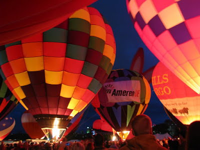 One of my best friends, Ellen, lives in St. Louis. She had asked me before I left home if it would be possible for me to be back in this area by the 16th of September. The Missouri Humane Society, with which she is very involved, uses the Balloon Glow evening portion of the Great Forest Park Balloon Race as a fund raiser. When I learned that the donation included not only dinner and drinks but also access to field where the balloons are actually lit-up, I said ‘you bettcha!’