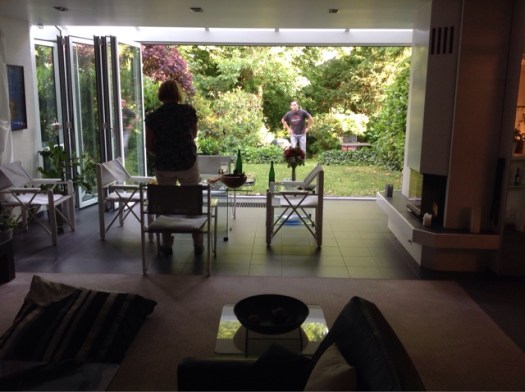 The view from the patio window next to our table was ‘framed’ by vines. It has rained earlier but the sun came out just as I shot the photo.