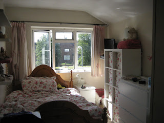 My bedroom all done in pink and flowers! It was their now-away-in-college youngest daughter’s bedroom.