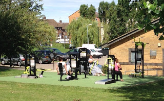 Max and Lola take me for my daily walk (literally, as they are both very strong and pull me along with them) at 3 p.m. to nearby Ripon Park. It’s huge, lovely, has a soccer pitch, basketball court, lots and lots of open space and a totally free workout area with really nice gym-quality machines for anyone’s use.