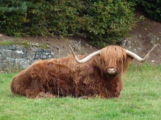 We spent 5 days riding, taking one of the roughest 3-hour ferry rides ever to the Hebrides (waves up over the windows!) seeing Highland cattle, old churches, Fairy Pools (Scotland has fairies!), mist-covered mountains, teenage boys in kilts and tennis shoes, beautiful castles, the famous Outlander Circle of Stones, tombs of long-dead knights, large, quite battlefields where ancient wars were fought (Culloden) and ending with the happy face of the Hairy Coo.