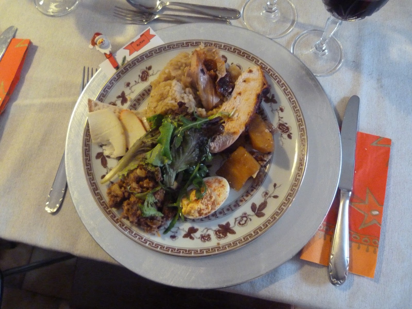 Off to the shower, hair, make-up, a nice outfit, scurrying up the hill to Jorge and Maria Joao’s home for lot of wine, a huge dinner which began at 9 p.m. (you do remember I said I had eaten dinner at 6), numerous desserts and after-dinner drinks, gift-giving at midnight, home in bed by 1:30 a.m. and up the next morning to make deviled eggs and sweet potatoes with brown sugar and marshmallows for my contribution to the Christmas Day feast held at Grandma & Grandpas home – which started at 2 p.m – and included many more members of the family!