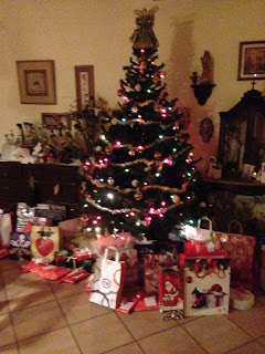 I was in sweats and a t-shirt and looking my normal, stay-at-home grubby self when there was a knock on the door.  There was Jorge asking if I were ready. Ready for what, I asked? Dinner and presents, he said.  Huh? I said.  A quick call to his daughter, the one who speaks perfect English, to have her explain that not only was I dining with the family tomorrow but had been invited for tonight as well.  We would be opening our presents, as is the custom, at the stroke of midnight.  Get in the car, says Jorge.  NO! I said –  and tell him to go home and I would follow in 20 minutes!