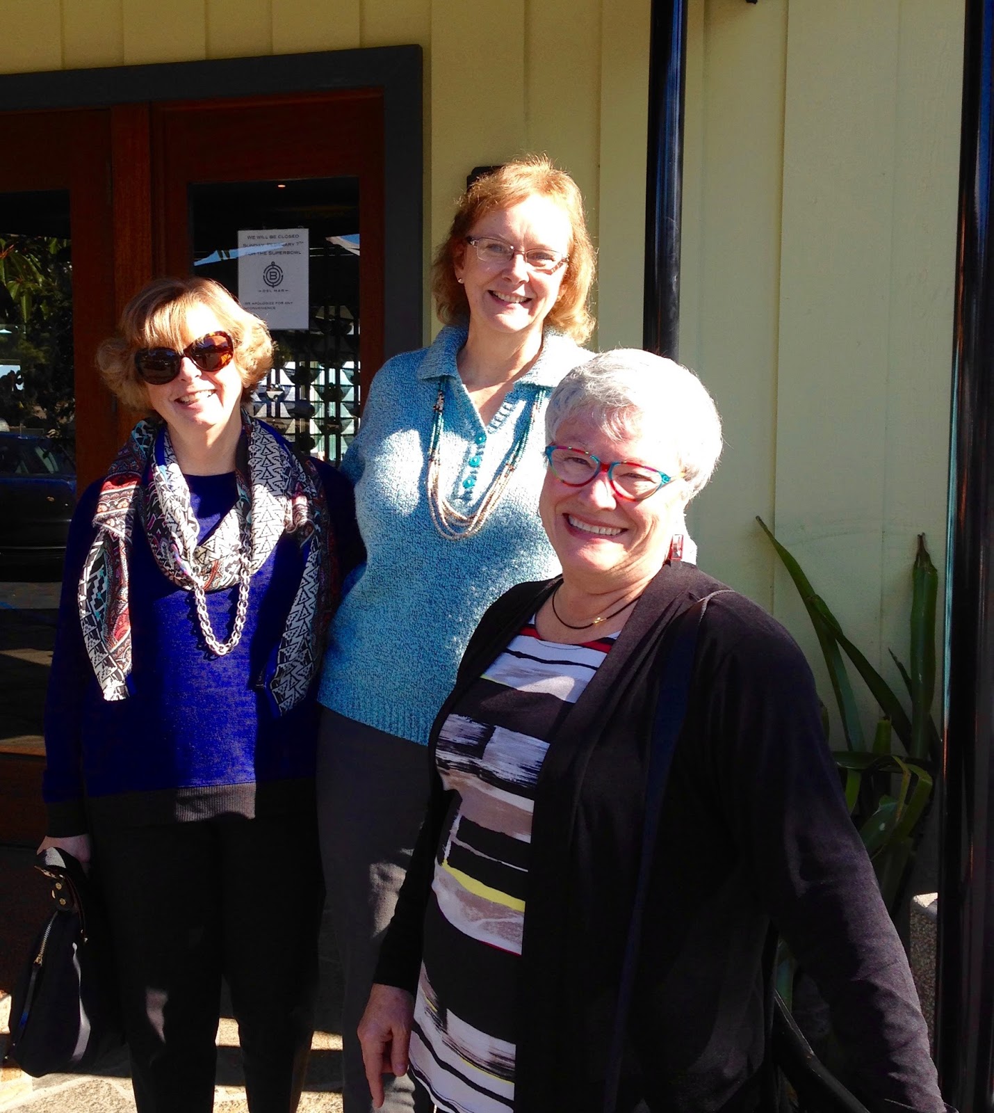 One of the nicest things about visiting my family in Solana Beach is ‘doing lunch’ with 2 of my dear friends from Danville High School. Susan lives in San Diego and Julie is in Del Mar. It’s always so much fun to reminisce and share memories of our long-ago youth over a delicious lunch and a good glass of wine!