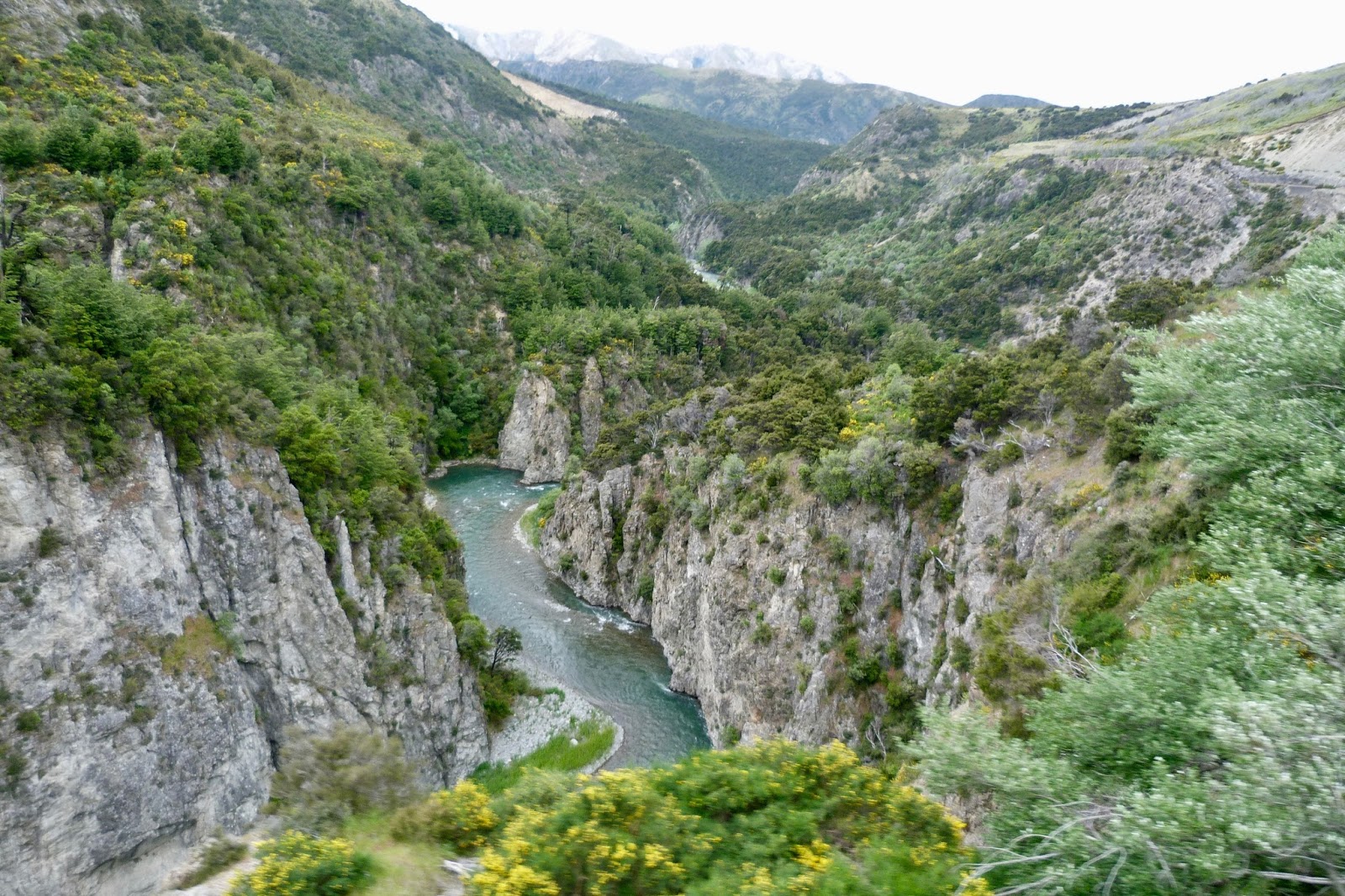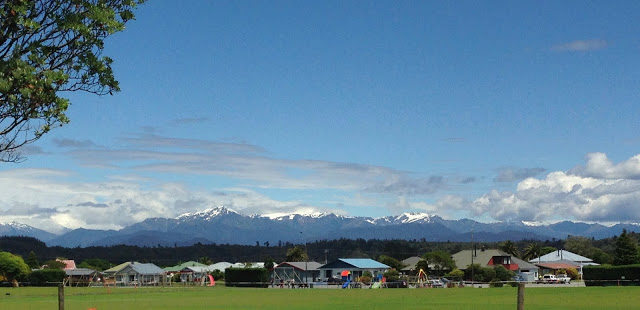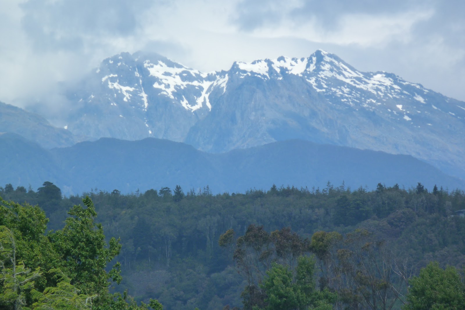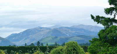 Heading out from Christchurch with the first view of the mountains we would be crossing – OMG!  There is snow on them there peaks.