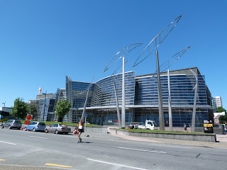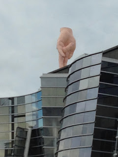 Quite a difference in style – and substance, as you can see.  You can barely make out at the top of the roof on the left-hand side of the CoCa the strange piece of art pointing you into the museum –