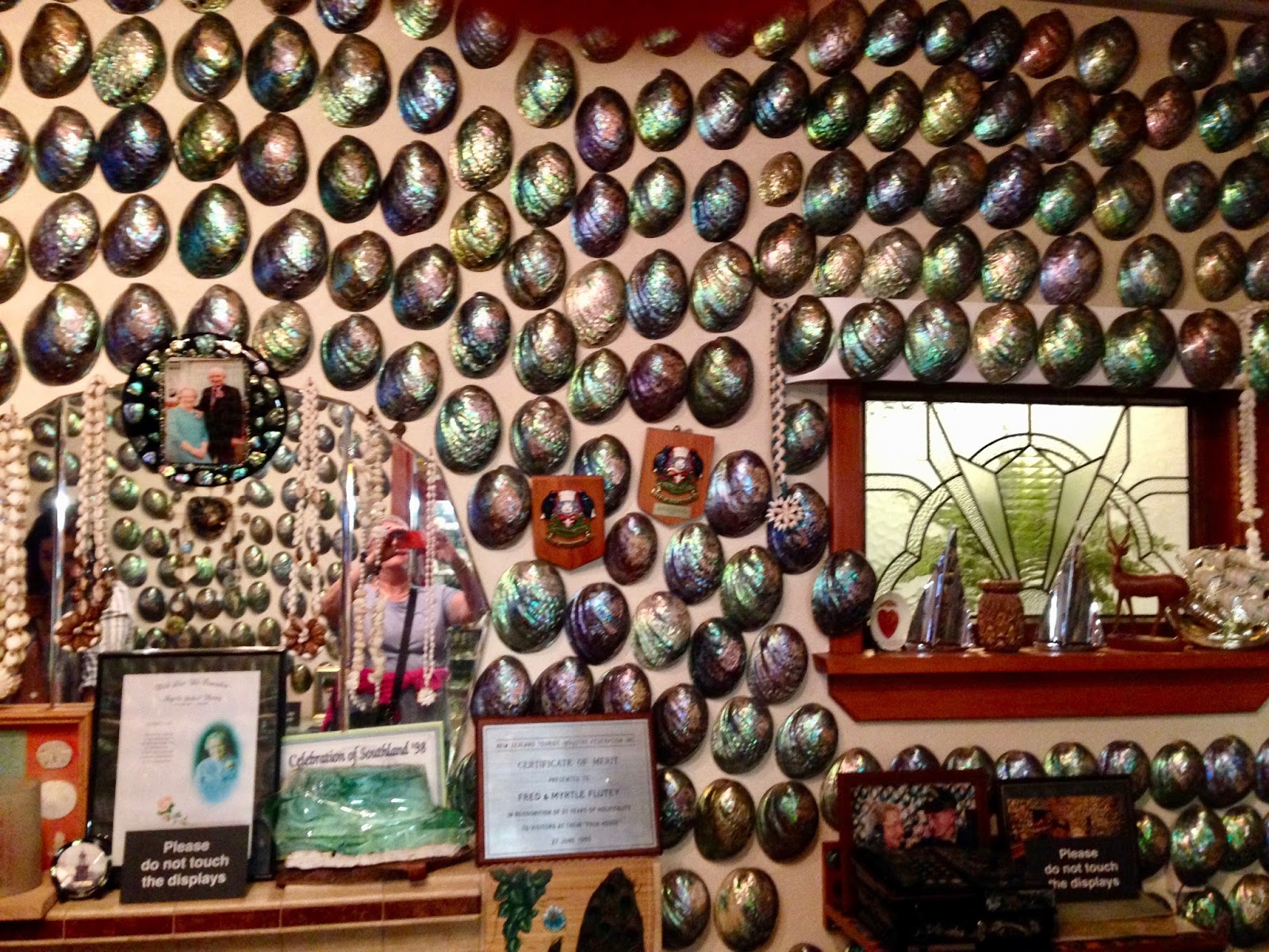 You see Fred love to collect and polish paua shells and Myrtle liked to display these beautiful shells. After haning the first one on their wall, over 1000 followed – along with lots of people from all over the world wanting to see this amazing little home.  My photo doesn’t do it justice to this space – but it sure was fun and many friends and family members will be getting a NZ paua shell for a gift when I return home.