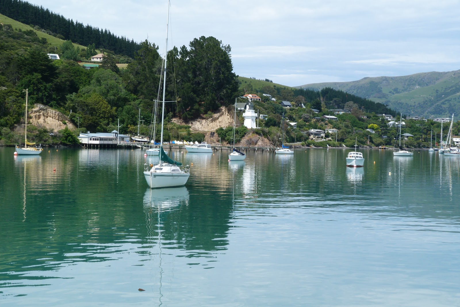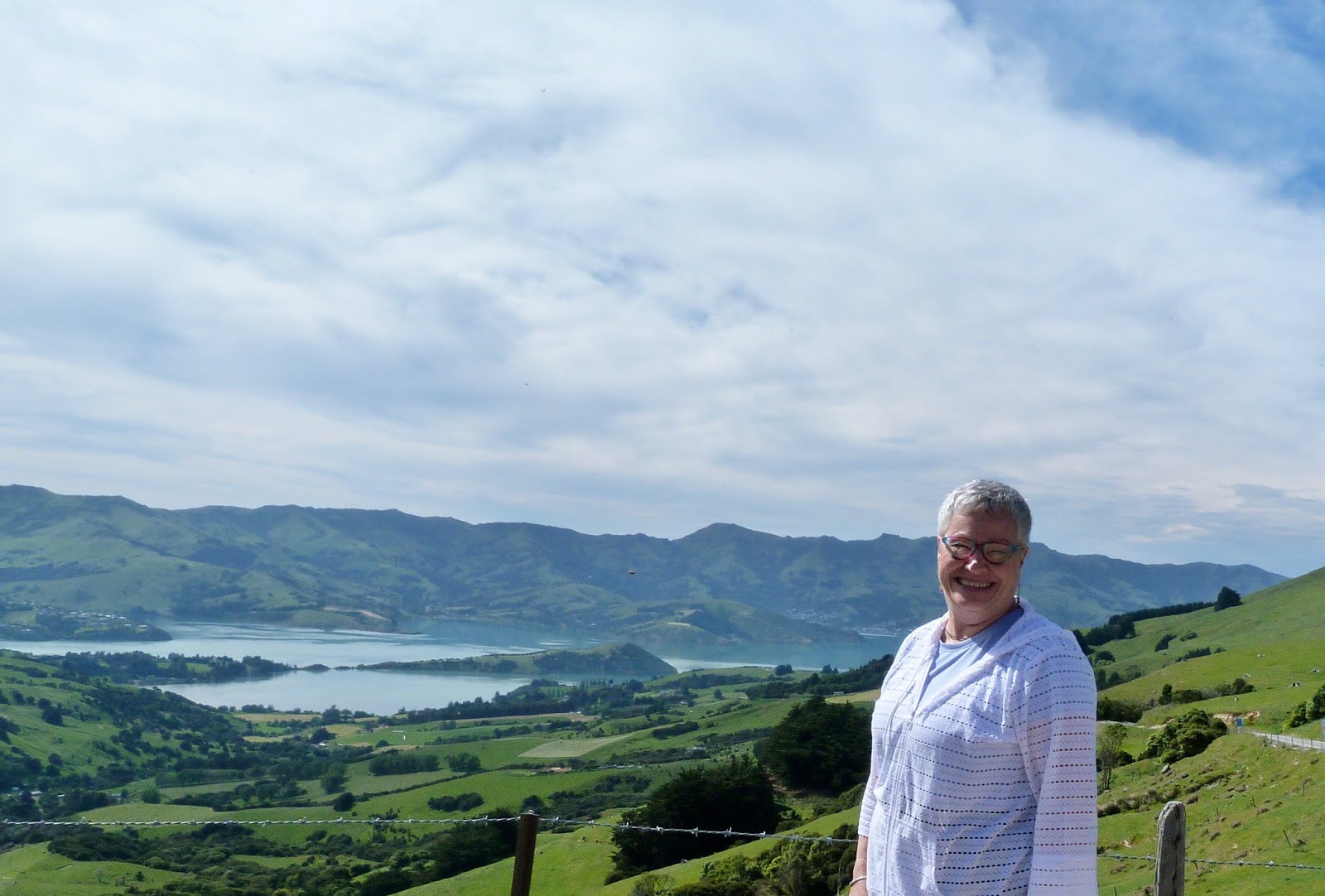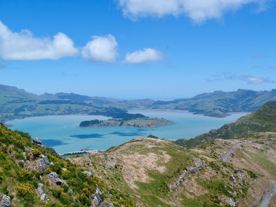 We made one photo-op stop as we looked down on the breathtaking vista overlooking the sheltered harbour that drew settlers to Akaroa in the first place.