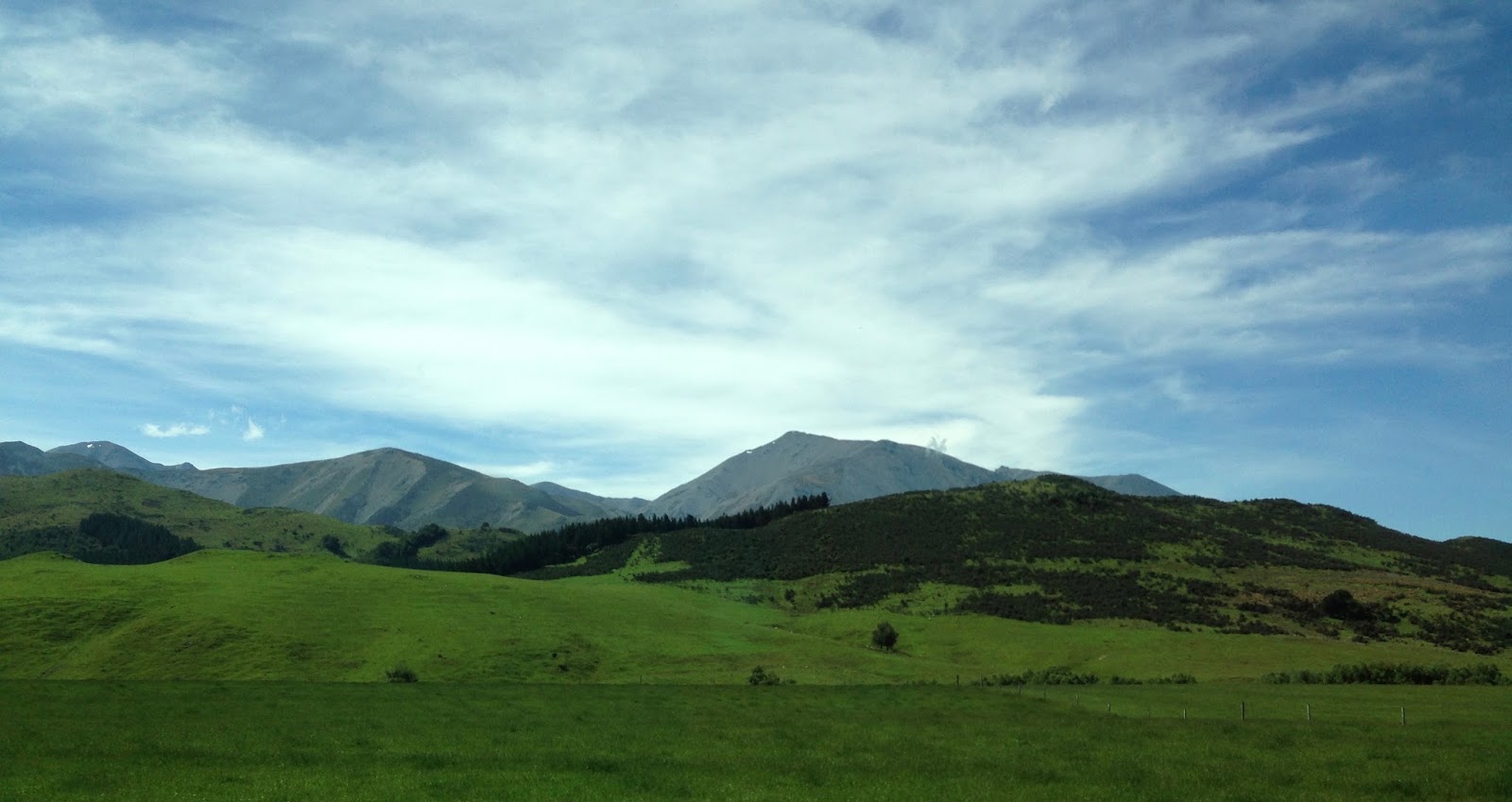My return trip to Christchurch went smoothly.  I even got to ride in the front seat of the mini-van next to the driver.  It was a gloriously beautiful day and though there weren’t  any photo stops along the way, I did manage to grab just one picture of the always beautiful New Zealand landscape.