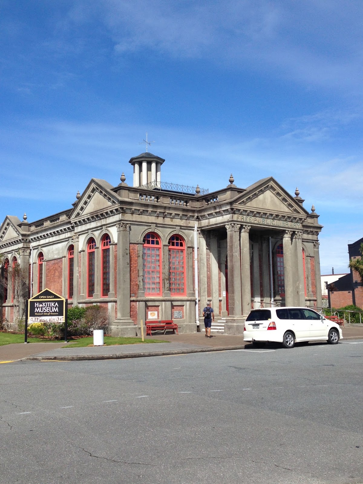 Hokitika started as a whaling port with the boom-time being 1867 when up to 40 vessels would be bunched at the docks, sometimes 2-3 deep unloading their cargo.  The area grew and became a prosperous town.  In 1908 Andrew Carnegie built one of his 18 New Zealand libraries in Hokitika which today is the local history museum. (Except it’s closed due to earthquake damage.)