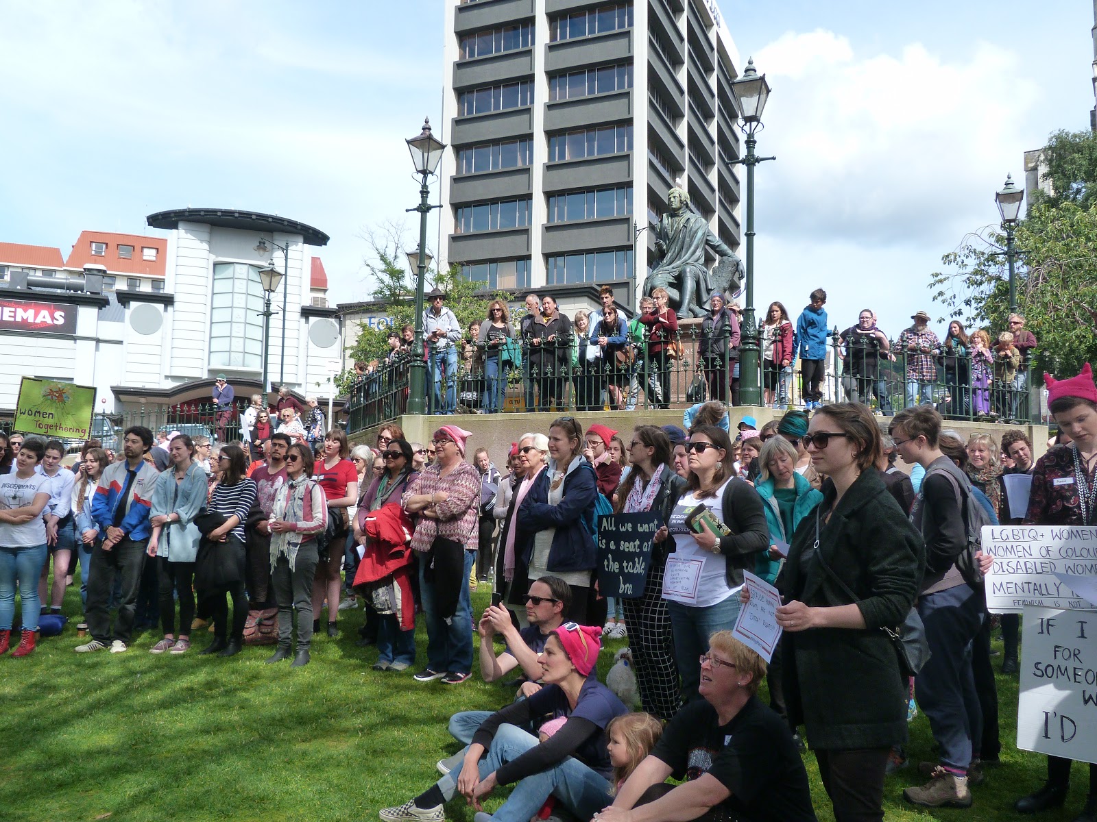 Before ending my week in Dunedin I had the great privilege to join the organizers and help with the plans for the January 21st, worldwide Woman’s March. For a short time, I was part of an amazing group of women. They hoped they might have 150 attend their March and were thrilled beyond belief when over 450 men, women, and children, many wearing ‘pussy hats’ showed up at The Octagon on the beautiful, sunny Saturday morning to listen to speeches and music, show their solidarity and share their concerns with women from around-the-world.