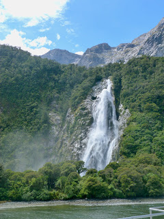 I had chosen to take the ‘nature cruise’ on Milford Sound. The normally wet and rainy weather had taken a day off and with sun shining it was a fabulous 3-hours cruise filled with mist-covered peaks, massive, thundering waterfalls, more seals and wonderful photo ops.