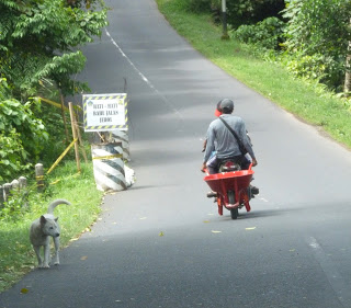 Though my homestay is located within an easy 10-minute walk to the very center of Ubud, wth their huge marketplace and the Palace (residence of the current ceremonial-only King of Bali) it is located on a fairly quiet street- if you don’t take into consideration the dozens of roosters who crow all day AND ALL NIGHT or the many street dogs who join in with their howls and barks at all hours of the day and night.  And then there is the putt-putt and roar of the main form of Balinese transportation – the motor scooter.  Quiet in Bali is relative.