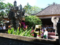 There is always a small temple in the center where these very observant Balinese Hindus pray and give offerings each day.  Structures have been added during recent years to accommodate paying guests.  The one I am staying in is a typical addition.