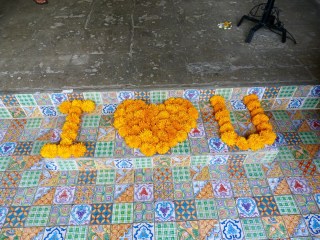 Wandering through Ubud your eye is drawn to the little things that make it so special and different from what we are used to –  like this welcoming statement above spelled out in fresh flowers as you enter a restaurant.