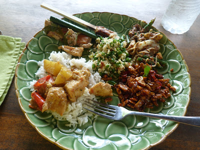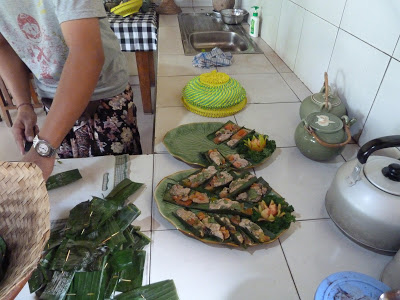 We found when arrived at Puspa’s lovely home after our tour of the market a long table was filled with plates of all the ingredients for each of the many dishes we would be preparing that morning.