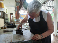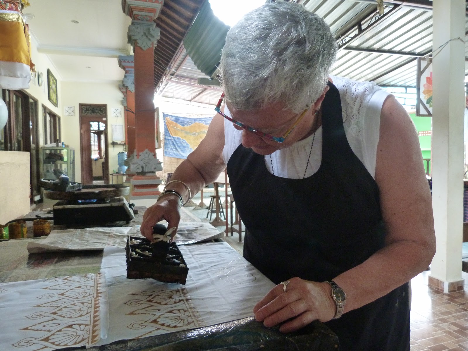 I attended an all-day batik painting class given by a Javanese master.  His work was breathtaking (yes I purchased one of his silk scarves!) and gifted my granddaughter Stella with the elephant I waxed and dyed during my day of creativity!