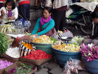First, the huge market that is located in the middle of Ubud.  It opens at 5 a.m. until 3 p.m. and sells everything from shoes to nuts – as well as veggies and flowers, eggs, fish, meat, knives, spices, kites, clothes – in other words almost anything you need.