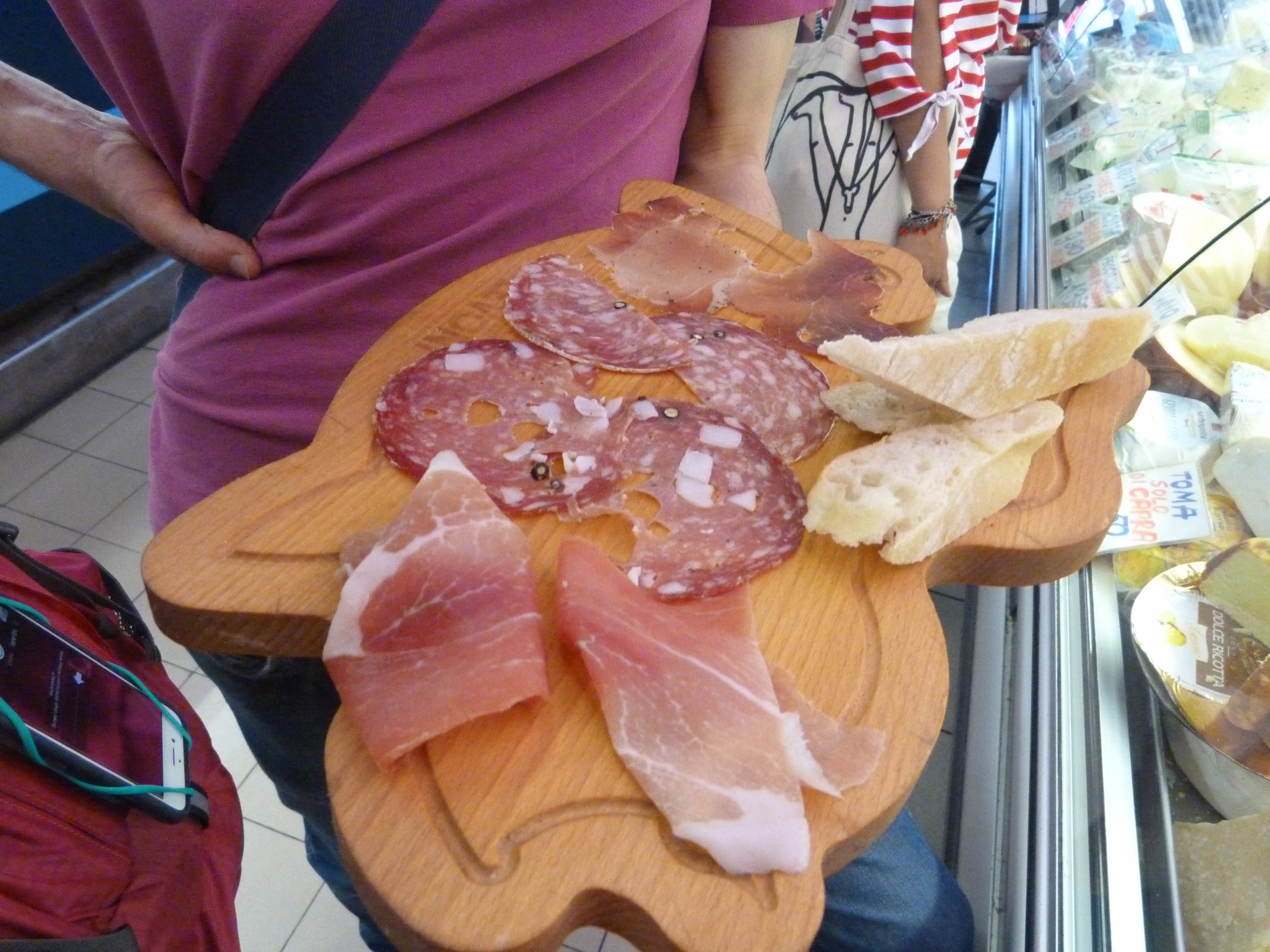 We started with a shot of Italian espresso which will wake anyone up! Then we went to an outdoor/indoor market similar but not as large as Mercardo Centrale where we tasted delicious samples of cheeses and hams.