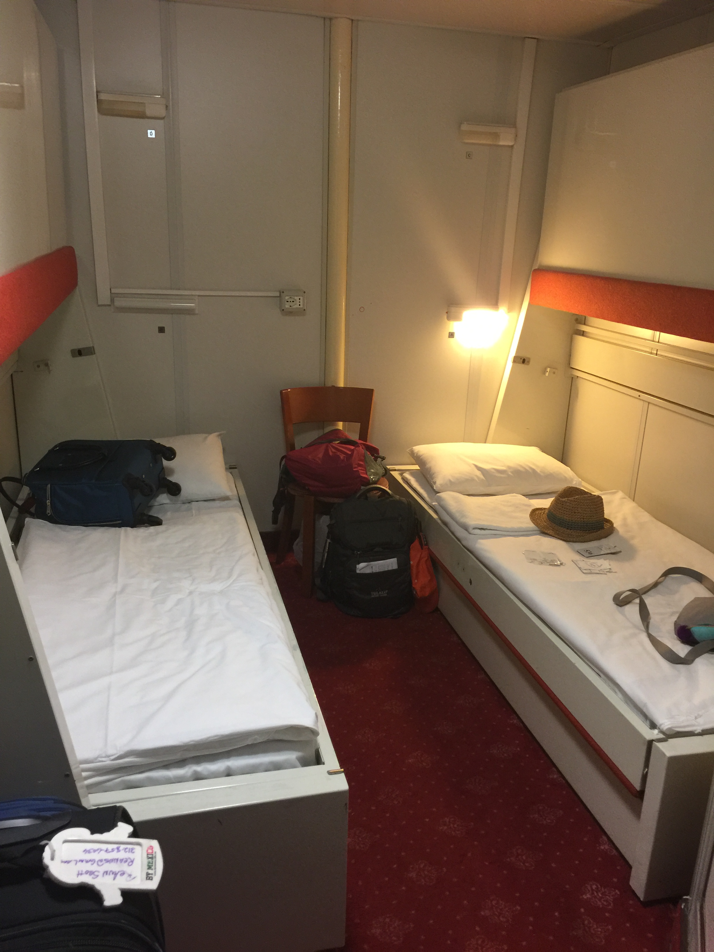 I have taken car ferries several times during my previous travels. From Athens to Venice (2 nights). From Manchester, England to the Isle of Man (3 hours) and now from Bari to Dubrovnik (11 hours). We managed to get a room with 2 bunks at the last minute. We were thrilled as we had been told they were sold out and we would be sitting up all night in the ‘sleeper lounge chairs.’ Not a pleasant way to spend the night at this age.