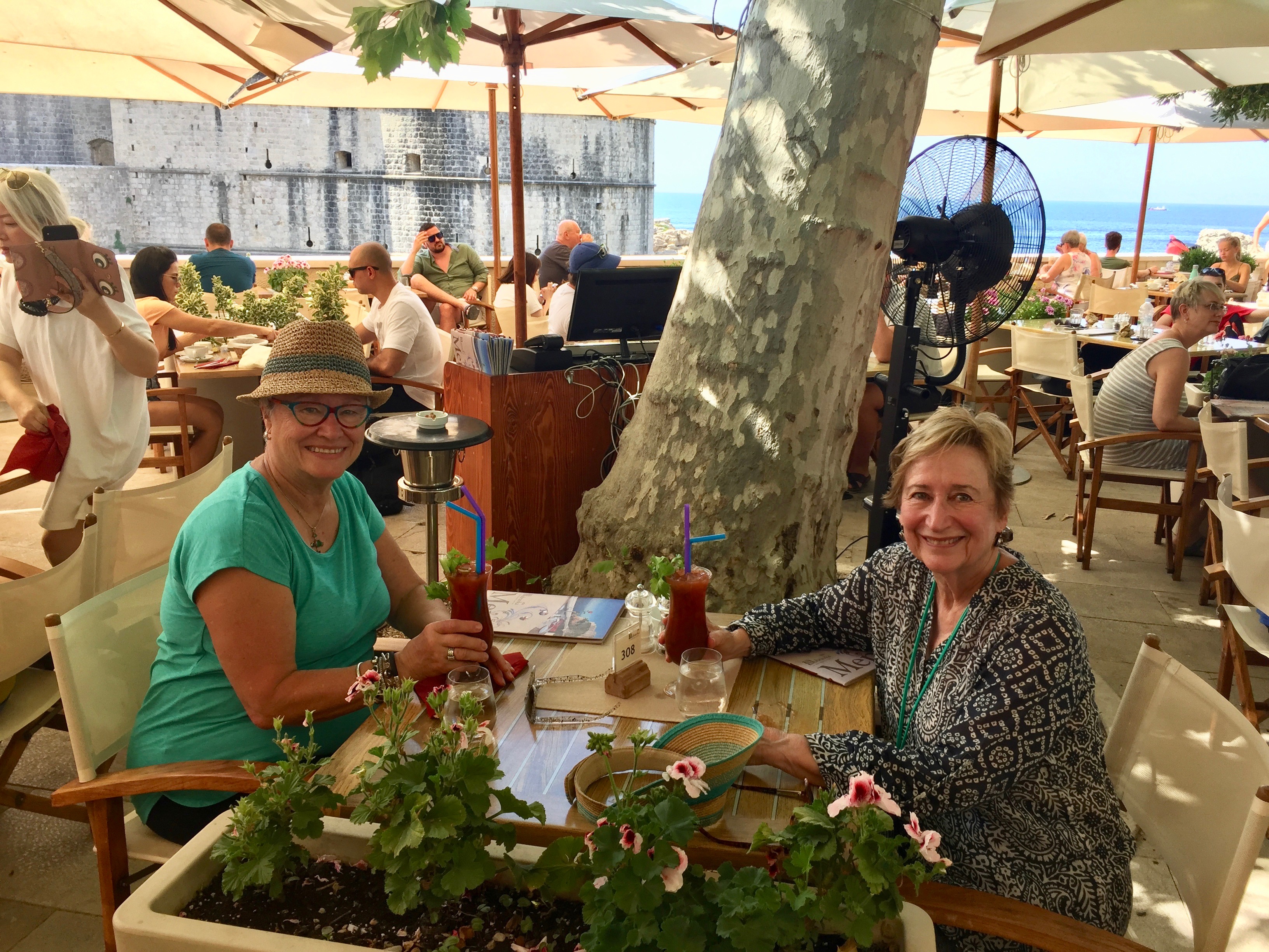 We did some major shopping at a fabulous store called Senka Jurisic – Think Pink as we felt it was our duty to raise the economy in Split for a day! It was so much fun. Joyce struck her ‘model pose,’ and they put our photos in their funky and fun clothes on their Facebook page! Joyce bought the necklace and pants, I passed on the white top with polka dots that made me look like a blob with dots – but got 2 other really cool tops!