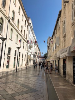 We found some delicious, fresh fish for lunch one day and even a restaurant that had a club sandwich on its menu another day! We fell in love with a nearby bokeria (meaning they serve local Dalmatian food) Konoba-Luçac that our hostess recommended. With their huge and extremely varied menu and great customer service, we chose to eat there each night we were in Split! Over the three nights we dined on fresh mussels, frites, pizza, wild boar stew, Greek salad, caprese salad and langoustine adriatic risotto, fresh hot bread and each evening began with a shot of their homemade mint liqueur.