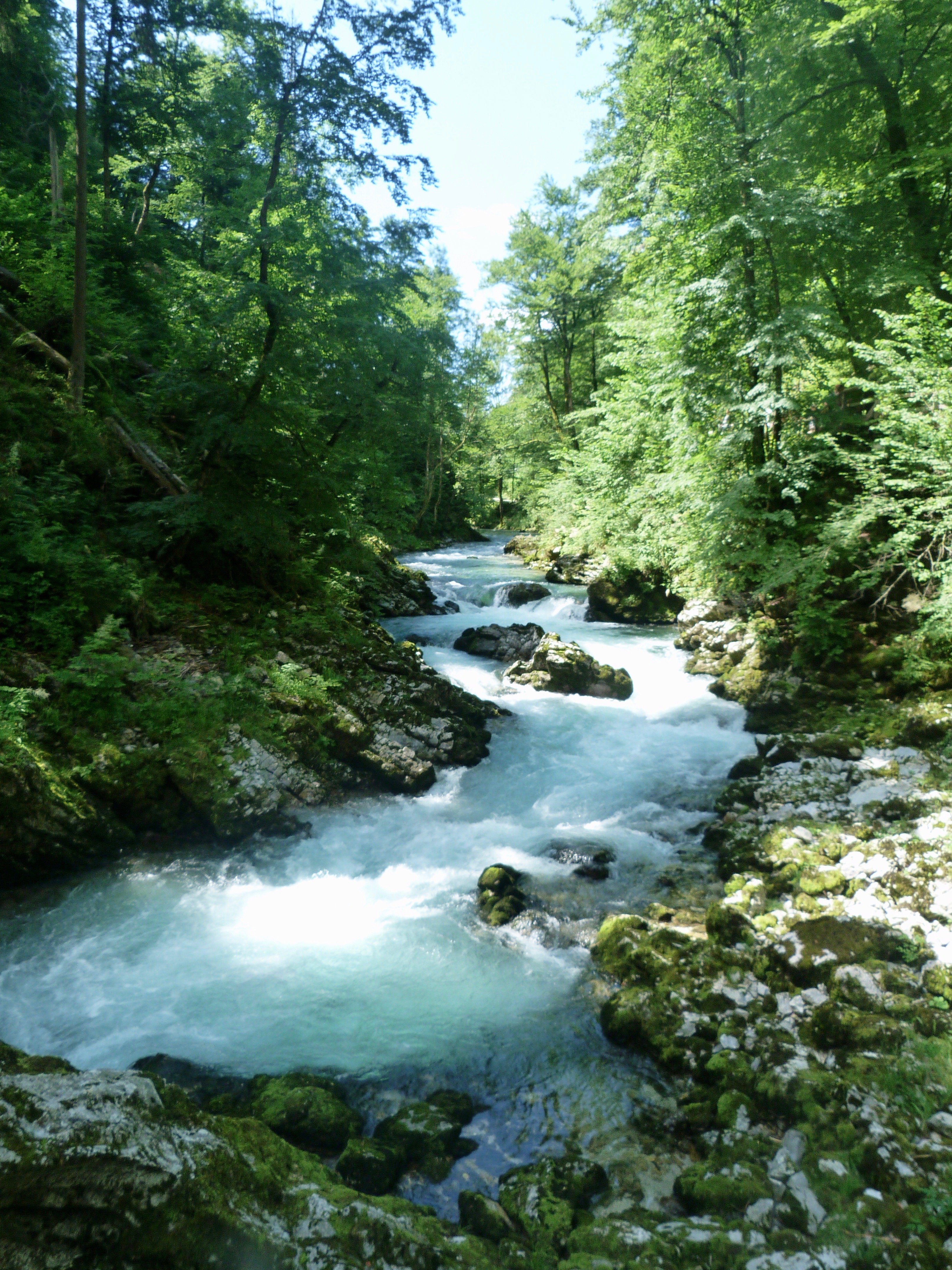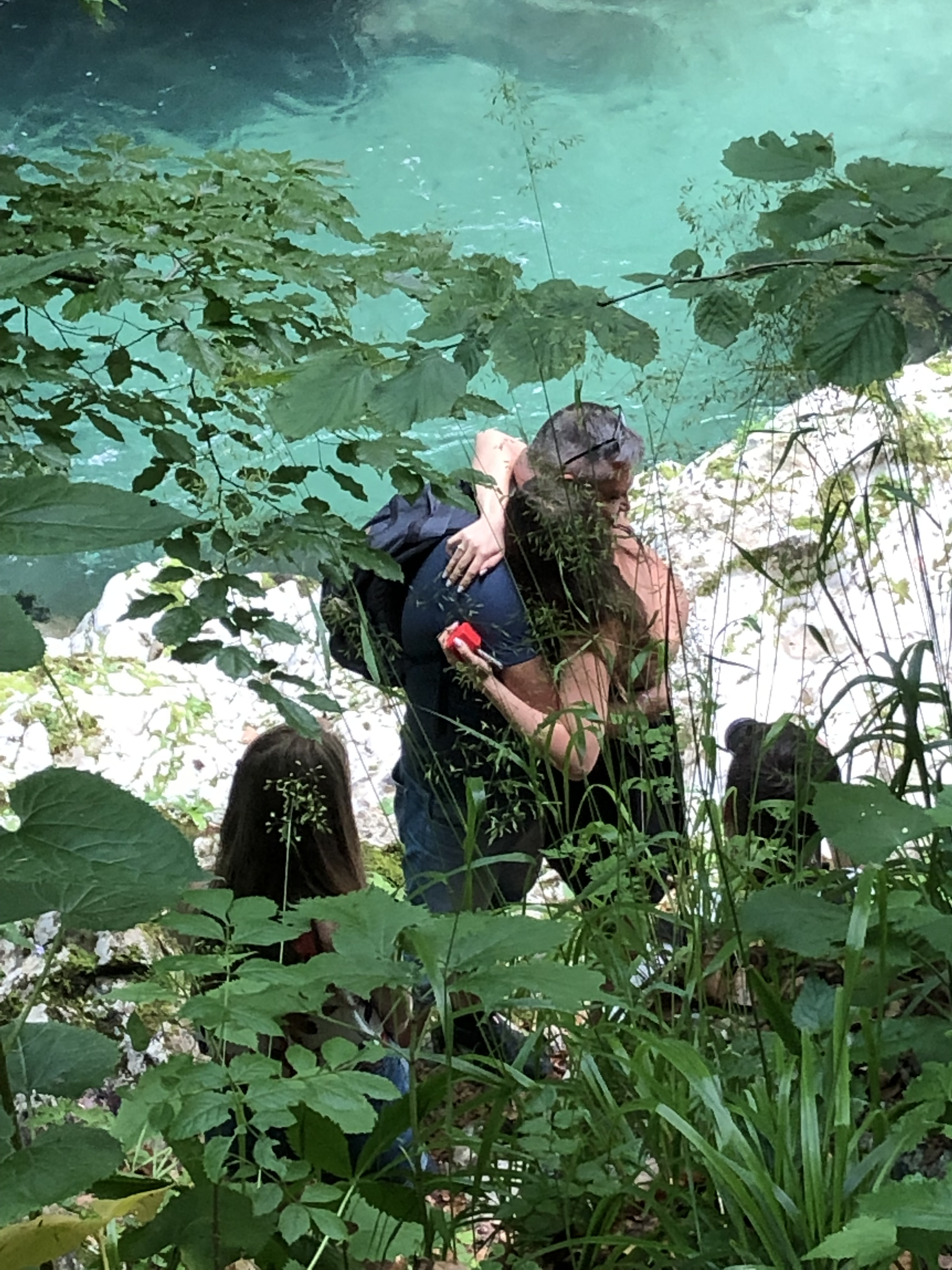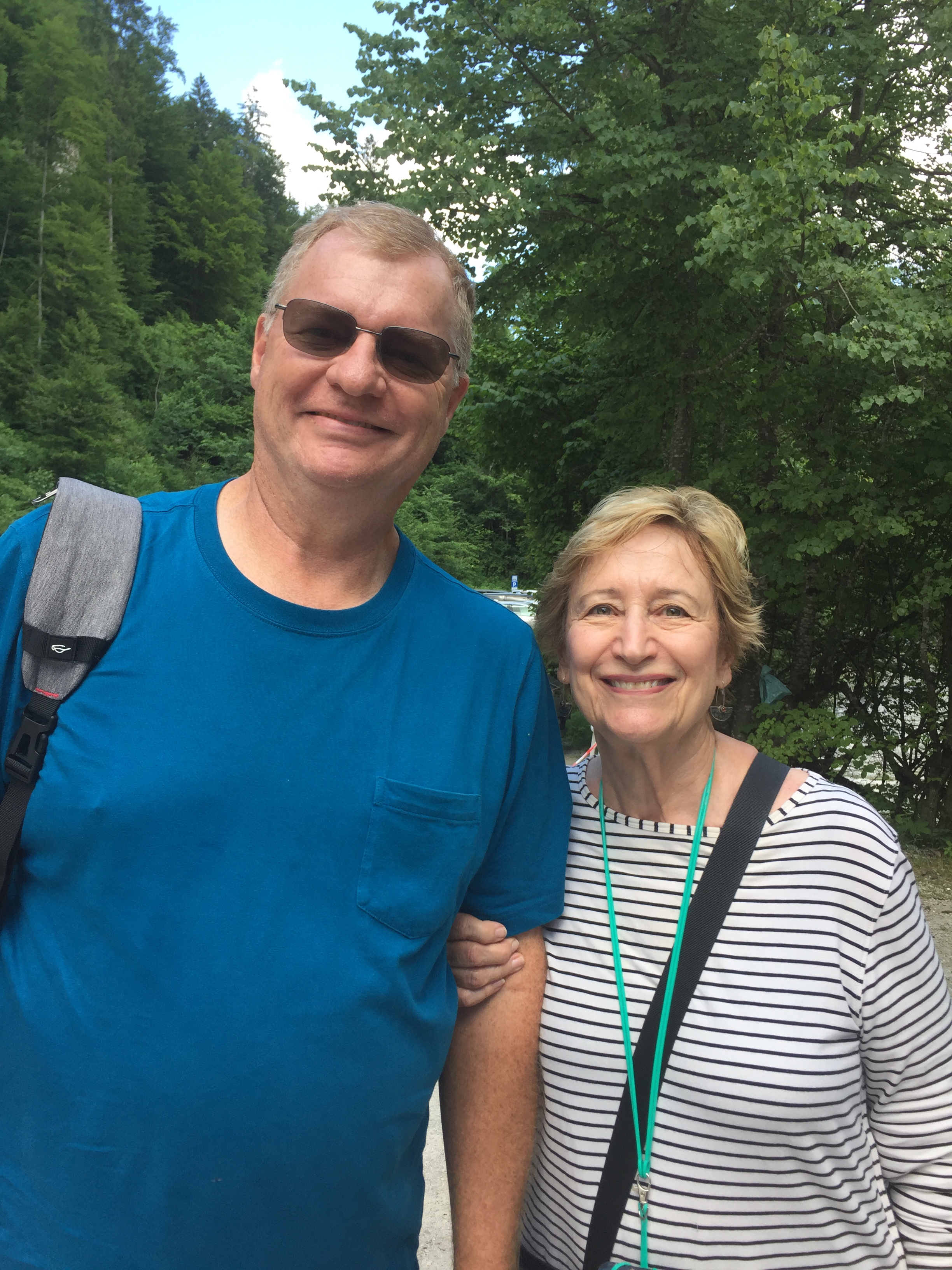 Out the door we ran (slowly) and hoped on the hop-on/hop-off choo-choo that circles the lake. We caught the local bus up to Triglavski National Park and hiked the Vintgar Gorge. Lots of rushing water, really cool temperatures, waterfalls, and Joyce even caught a photo of a couple hugging just after he had proposed. (See red ring box clutched tightly in her hand.) What was really nice, and so environmentally-friendly, is they have built a raised, wooden walking path along side the gorge. No rocks to stumble over and no wearing down of the shore line.