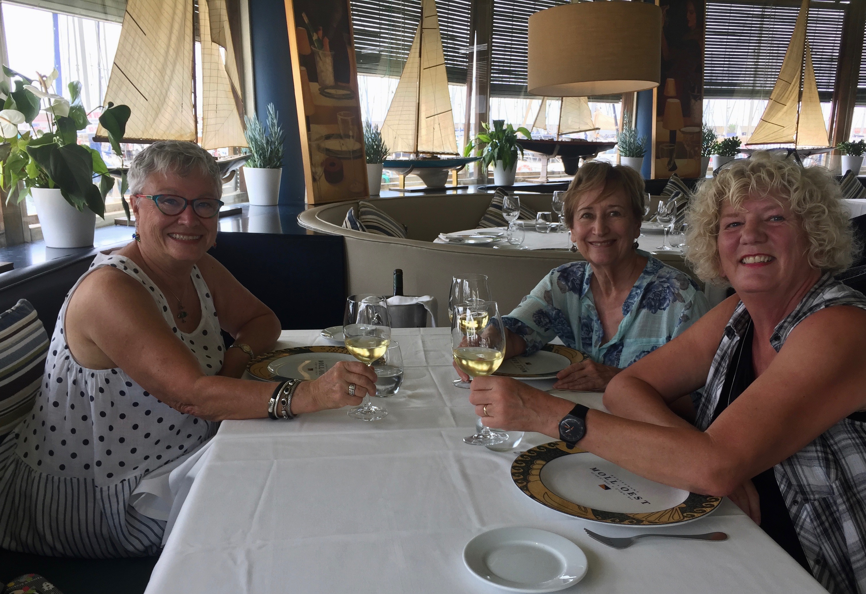 We were thrilled to be joined for our first lunch at Moll•Oest by our good friend and fellow traveler, Debbie Campbell of Senior Nomads. Michael, the other half of this traveling duo chose to spend his lunchtime on the huge beach just down the way, allowing Joyce, Debbie and me several hours to sip a good Chardonnay, devour a delicious shrimp salad and catch up with each other’s travel itinerary.
