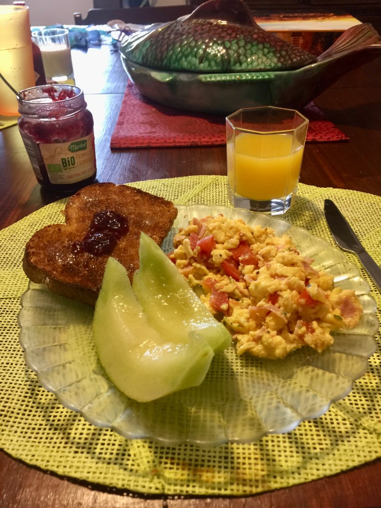 Food, Glorious Food! Cooking and eating has become our biggest event each day. Three planned meals a day. We might start with avocado toast with bacon and an egg in the morning, homemade tomato-basil soup and sandwiches and chips for lunch, and dinner is whatever tickles our taste buds based on a recipe we can remember or find on the internet.