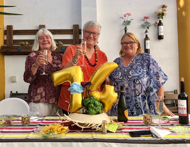 By yesterday I was much better. Still sore and stiff – and a year older – but ready to enjoy a couple of bottles of Prosecco with friends. The menu remained the same with the addition of fresh melon wrapped in prosciutto. Cathy, Joyce, Joyce and I had a fabulous evening. We discussed life in lockdown in a country that has followed all the rules and is slowly reopening. We wondered what life will be like in Columbia where Cathy and Joyce live as ex-pats and isn’t scheduled to allow even residents to return until September 1st. And, Joyce and I talked about our planned return to our homes in Atlanta and San Miguel de Allende on June 20th.