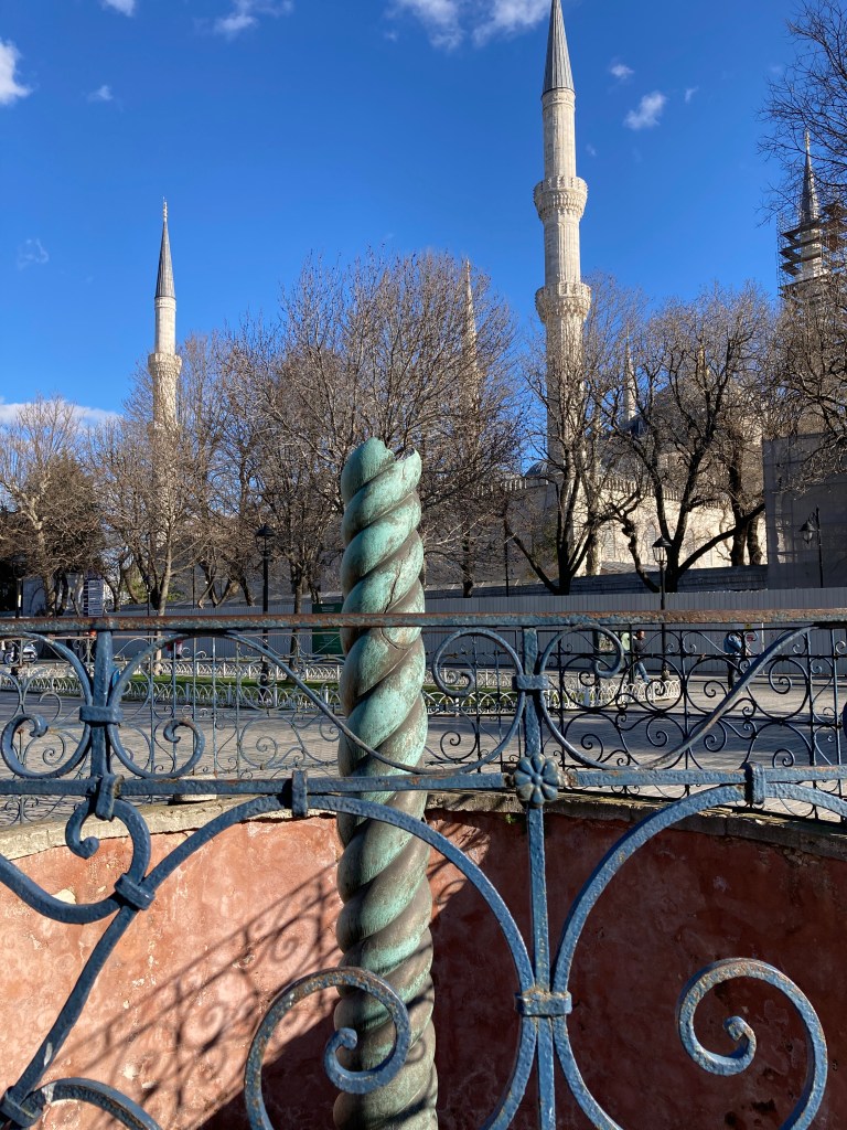 Some of the original statuary still remains – the Serpent Column, the Obelisk of Theodosius, The Walled Obelisk, and the statue of Porphyrius the Charioteer. It was a time to sit on a bench in the sun and listen to Bilge as she tells me tales of Sultans long past, heroic and dastardly deeds, and I envision Ben-Hur type chariot races pounding around this massive space.