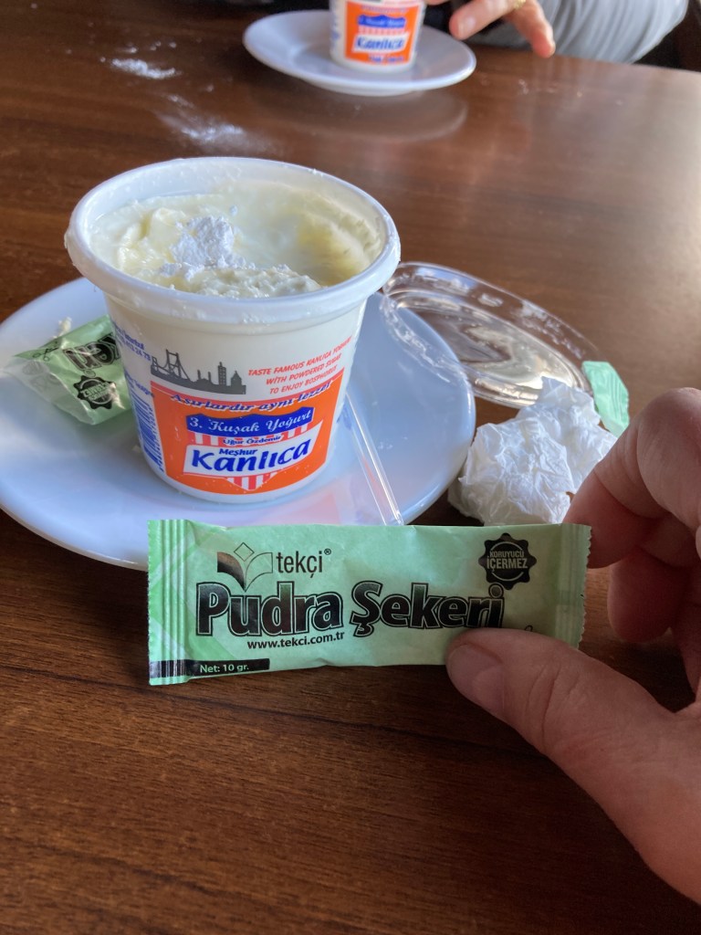 In Kanlica I had the most delicious, locally-made yogurt I have ever tasted. It’s a morning ritual that the Turks stop for a cup of coffee and a cup of yogurt topped by….powdered sugar! Soooooo good.