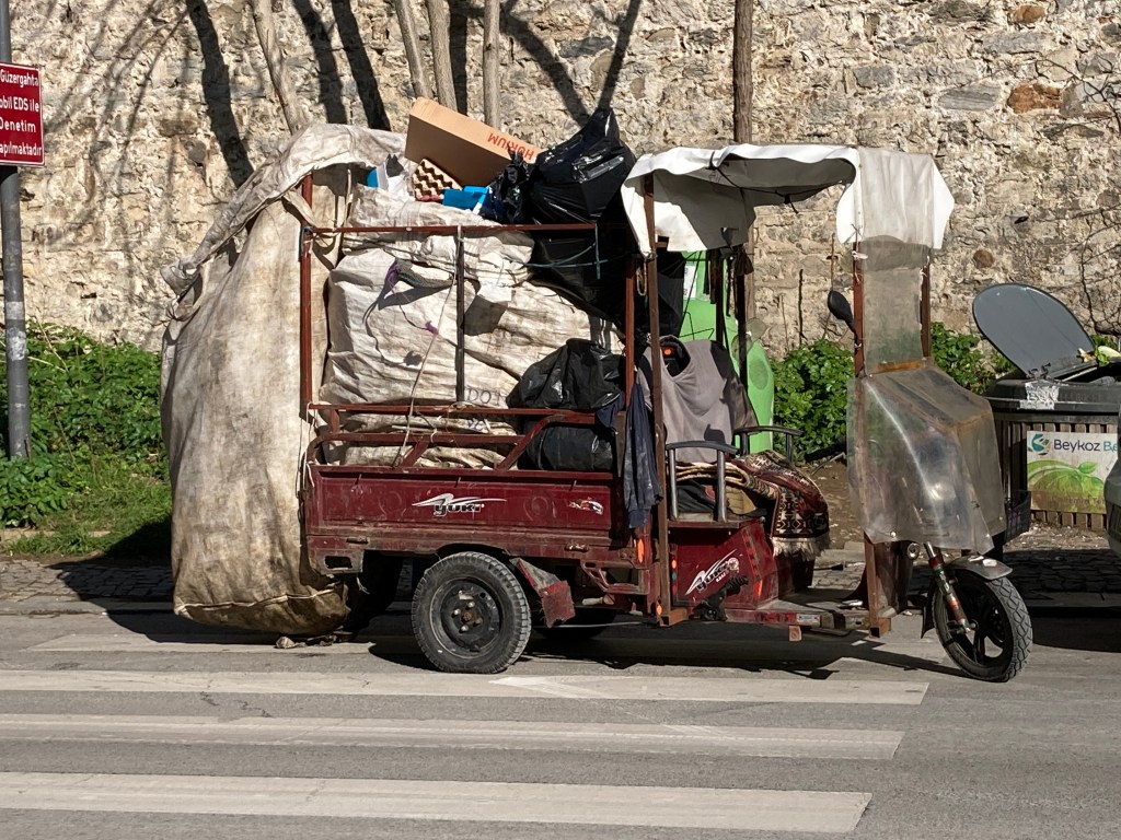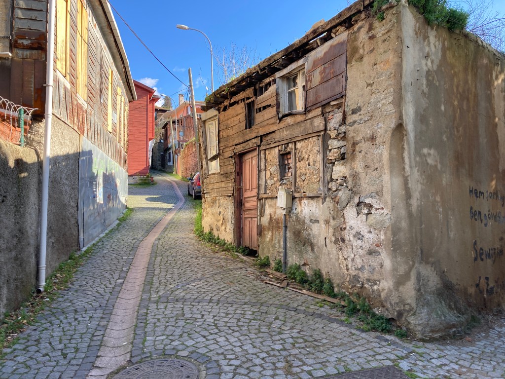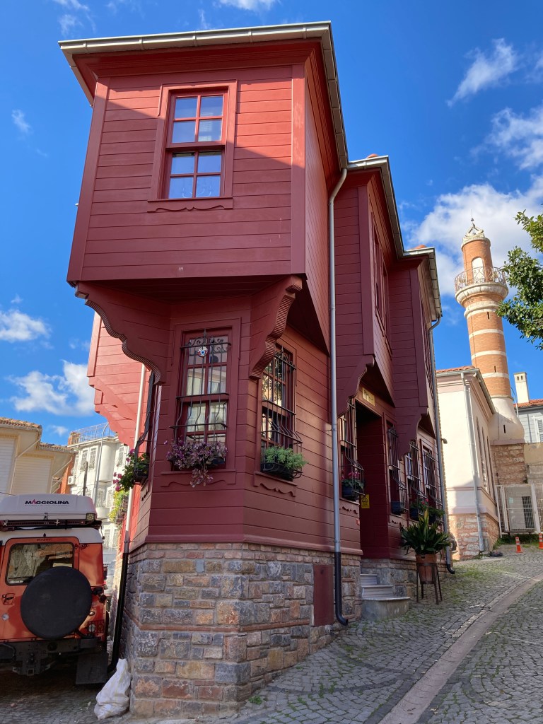 In the next two villages, we saw more wooden houses, the oldest cemetery in Istanbul, a fort, a truly funky recycling vehicle, street murals, and a funky red house I would have loved to see inside.
