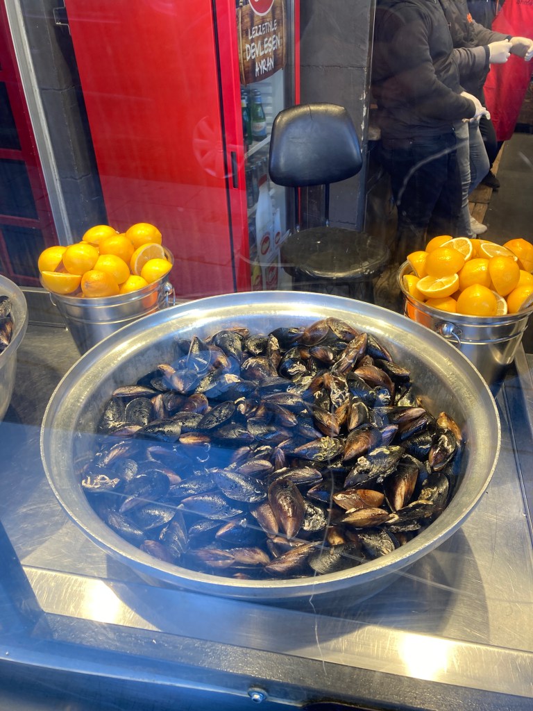At our final stop and the largest town, Uskudar, we nibbled on salted pretzels and fresh mussels with lemon juice, window shopped, went into another large mosque, and stopped in the local market so Bilge could pick up her dinner for that evening. I just wanted to buy every kind of olive in one stall which sold nothing but olives before catching the ferry back to the European side.
