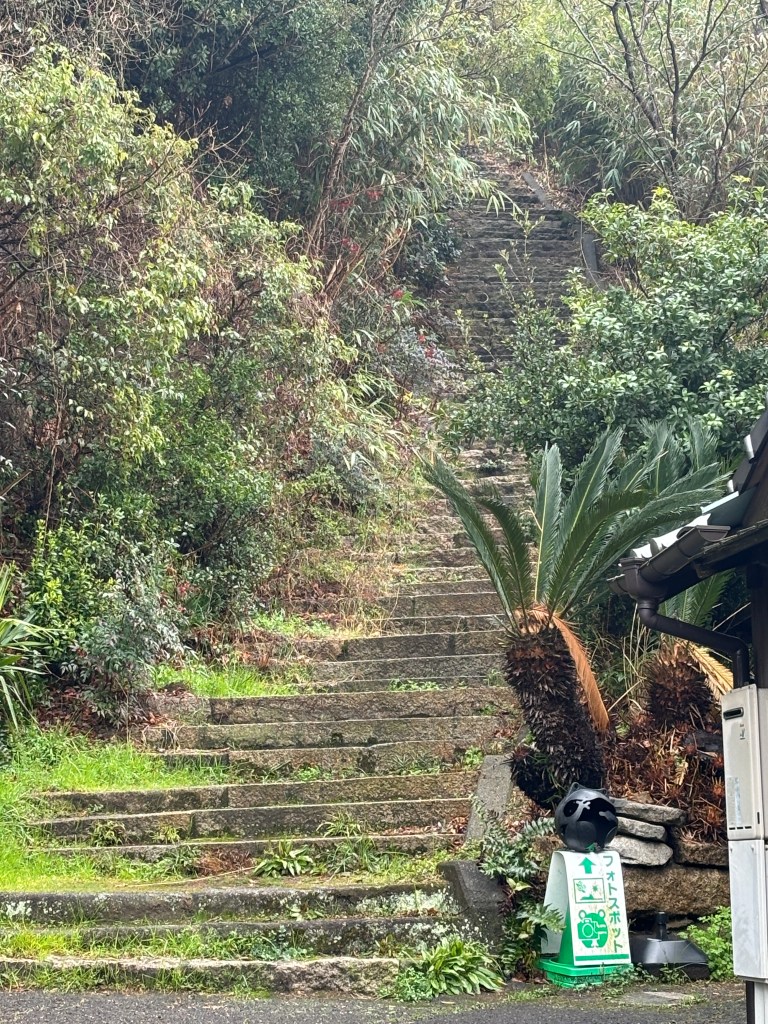 The weather was not cooperating. It was cold, damp, and rainy. I had chosen a lovely small boutique hotel up on the hill, My Lodge Naoshima, with lovely rooms, each with a beautiful view of the bay, and only a 10-minute walk from the ferry dock. It was only when we landed that I learned one of the group should have gotten his hip replaced years ago. Walking any distance, and certainly up a hill was not doable.