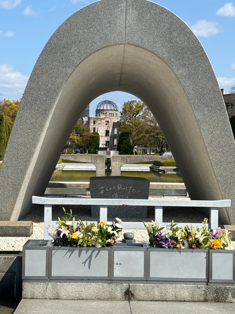 The sun was shining the next morning as we easily found the local bus to take us from our hotel to the Peace Memorial. We split up to tour the grounds outside before walking through huge rooms filled with photos and displays of what man can do to his fellow man in the name of war.