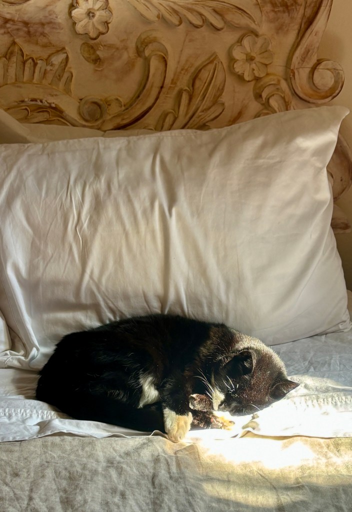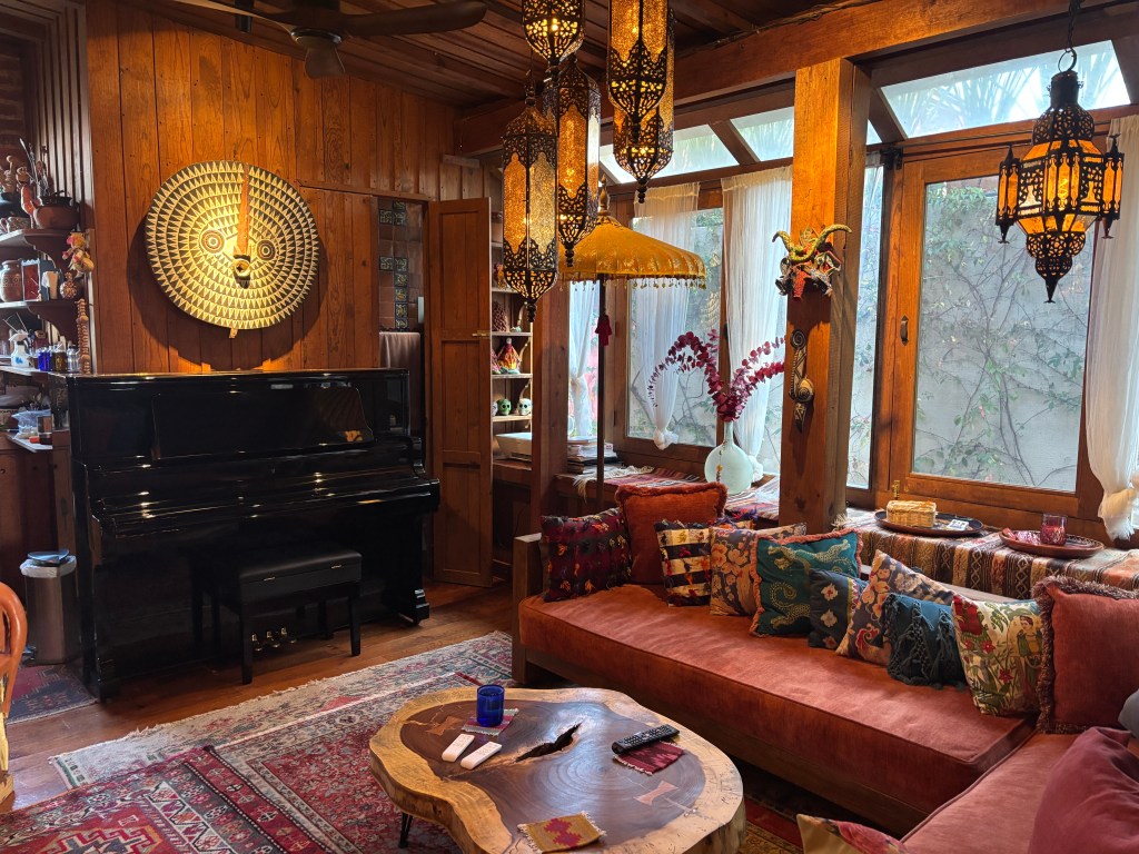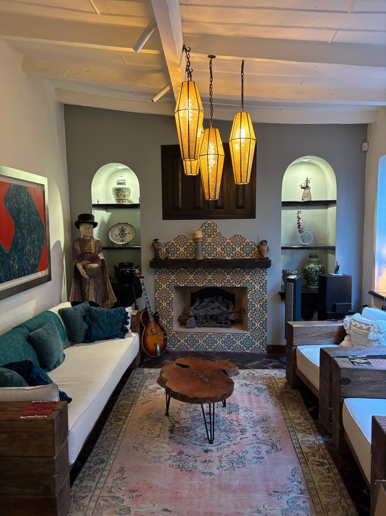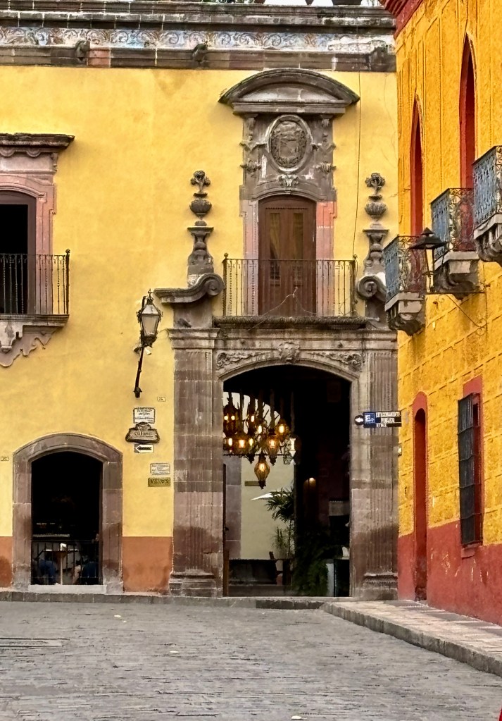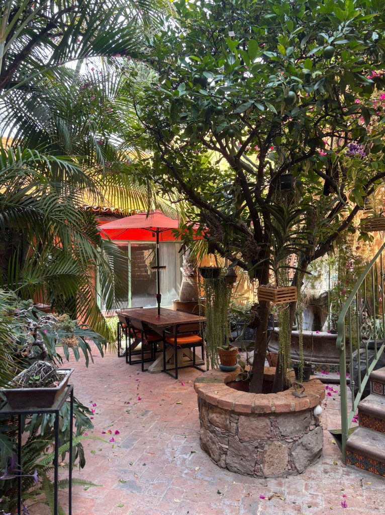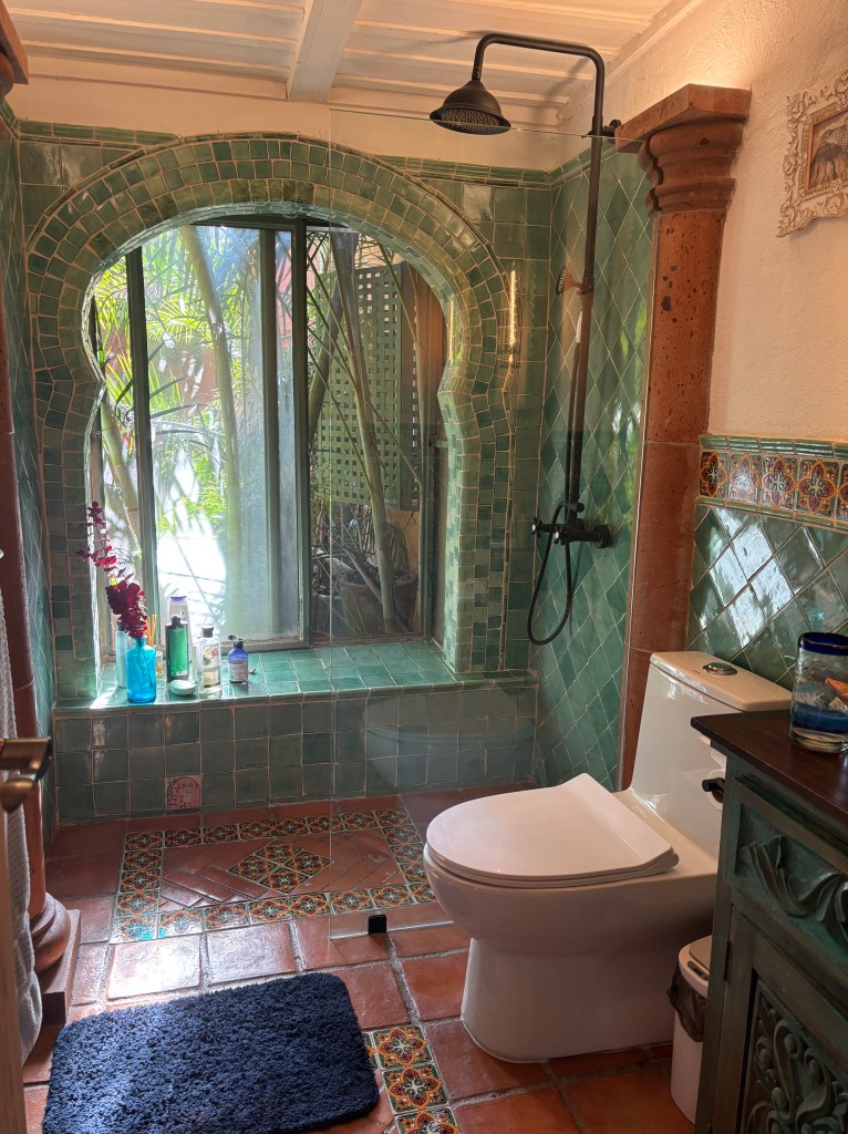 Since mid-October have been house and kittty sitting (Kosmos, 21 years old-sleeps a lot!) at one of the oldest houses in San Miguel. (Some portions originally built in the 1700s). It’s an unusual house, with a glorious garden in the center, an all-wood addition on top, and my little casita at the back. My favorite thing is my magnificent Moorish-looking indoor/outdoor shower.