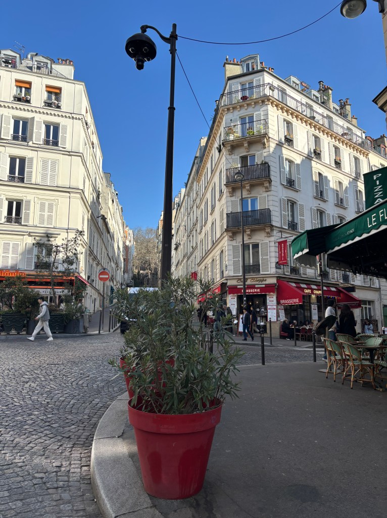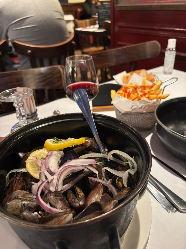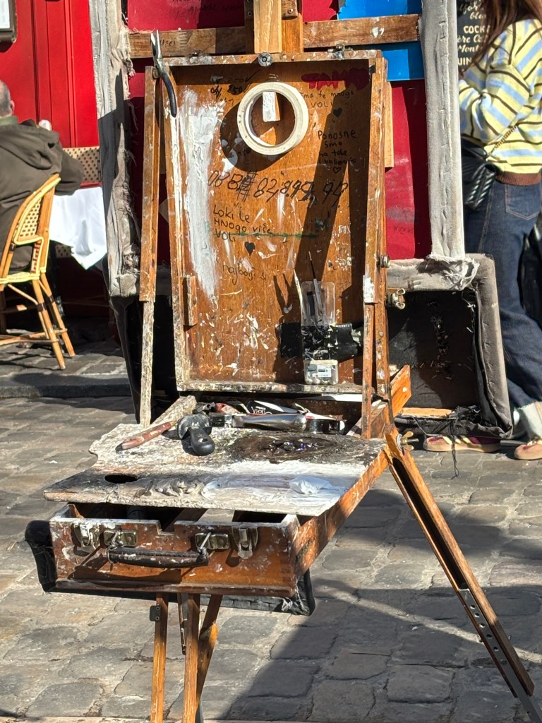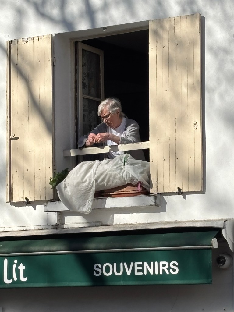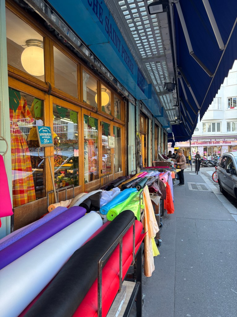Since I had taken a historical walking tour of Montmartre the last time I was in Paris, I spent my second day wandering around the Sacre de Coeur, taking the funicular to the top of the hill instead of climbing those stairs!, strolling through the Place du Tertre (where the artists hang out and paint all day), sitting at a sidewalk cafe and people- watching for a few hours, finding the fabric district (whoopee!), and ending my day with a dinner of steamed mouels and frites, a favorite.