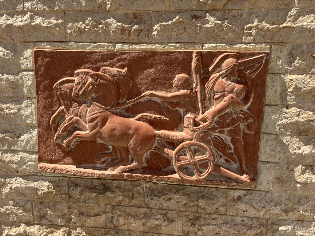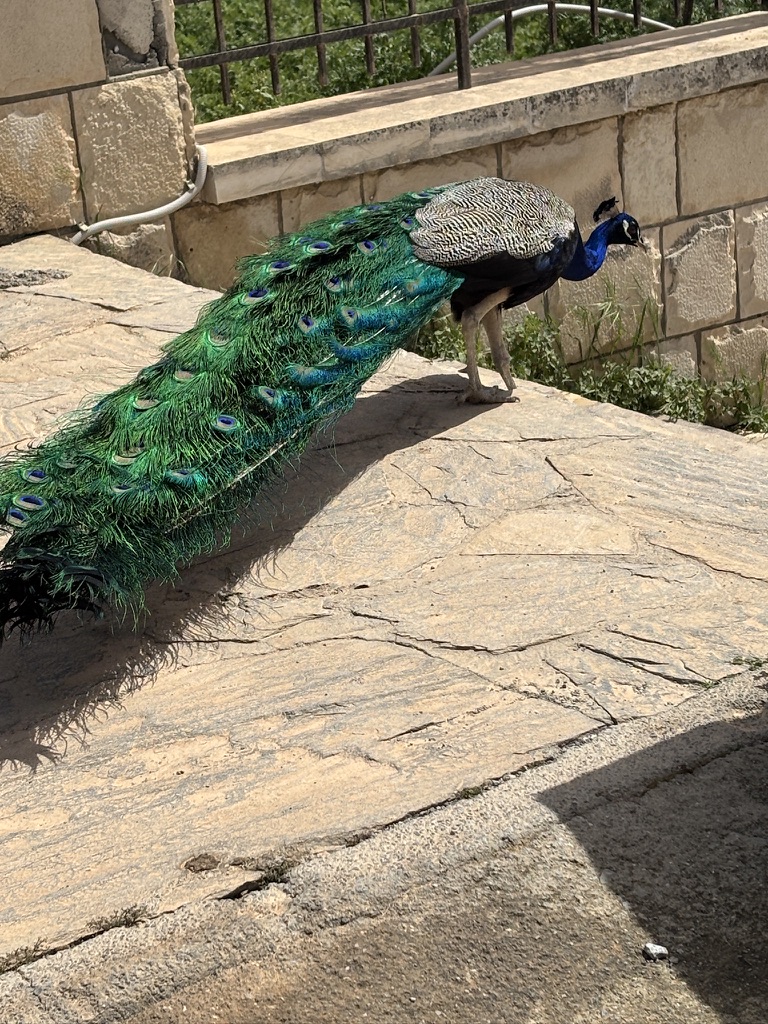 Our last stop was the Palace of Knossos. The link will take you to a wonderful video about the Palace. This ancient civilization was a female/priestess-led society. The video shows the destruction from the Santorini volcano eruption, and subsequent massive tsunami, and capture and future control by invaders from the mainland. Peacocks have always lived on the grounds of Knossos, and even today, they are everywhere. The one pictured walked alongside me as I returned to the van after touring the Palace.