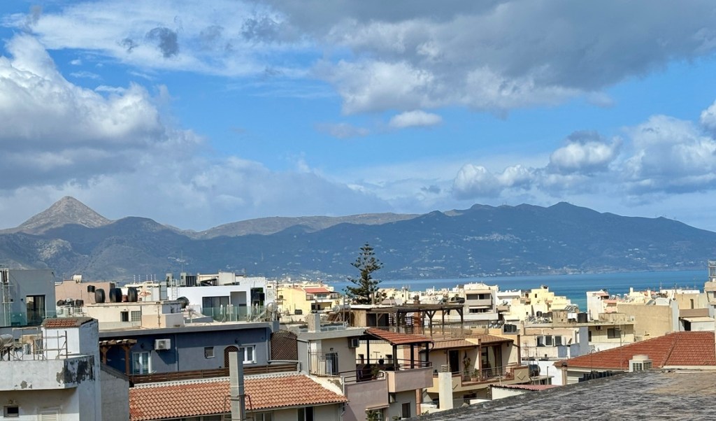 One of the scariest moments I have had since arriving on Crete happened the day after this tour. The weather had been sunny and pleasant. I had spent the morning walking through the Old Town, and as has become my custom, after lunch I took a short nap. The sky was bright blue when I closed my eyes. Thirty minutes later, when I awoke, the wind was howling, and this was the view from my windows!