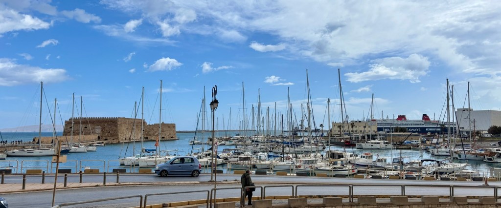 FYI, I include links for every city I visit. If there is a line under the name of city, when you click on it, it will take you to a page filled with information. For example, Heraklion has been in existence since 7000BCE. It was a large and very progressive Minoan civilization during the Bronze Age, which was conquered many times throughout its existence, was even washed away by a tsunami, rebuilt, and as of 1971, has been the capital city of Crete. Take a moment to click on a link. You will learn so much about Greece, its islands, and its glorious civilizations.